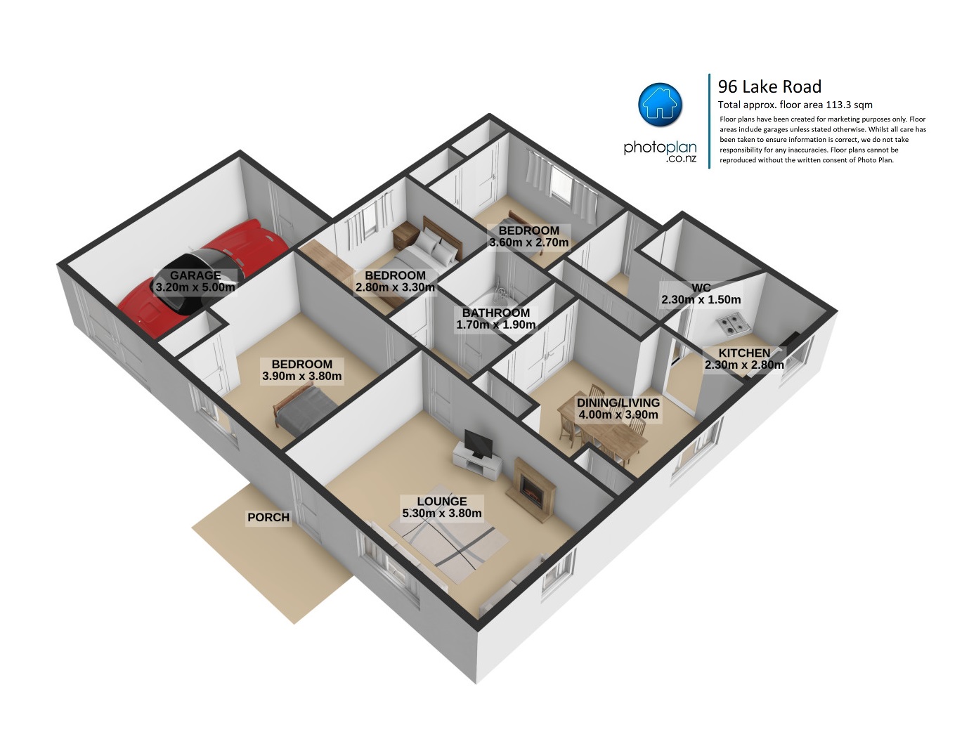 Total floor area (approx.): | 113.3 sqm | |